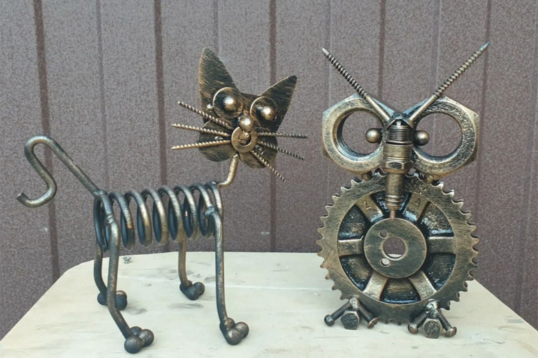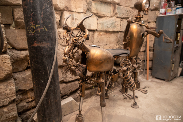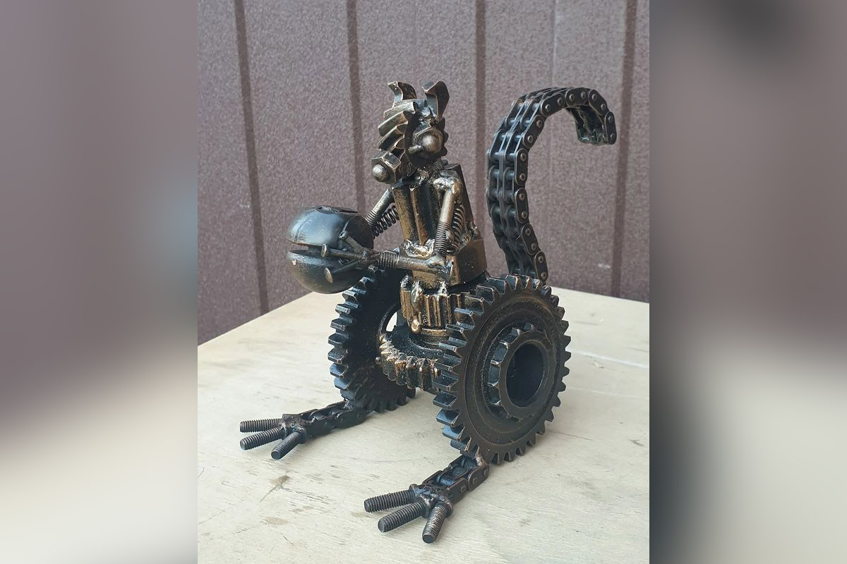 Все они сделаны из ненужных деталей от мотоциклов и велосипедов. Когда-то это было увлечение только президента клуба. Сейчас к созданию металлических поделок подключаются все.
