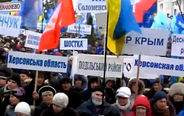 Согласно данным Партии регионов, в «антимайдане» участвует куда больше людей — около 200 тысяч. Акция проходит под лозунгом «Сохраним Украину!».