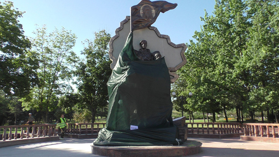 Памятный знак в честь погибших ополченцев «Они стояли за Родину» был установлен в парке Дружбы народов в мае 2015 года. В ночь на 1 сентября 2016-го памятник подорвали неизвестные, тогда скульптура также была повреждена. Власти ЛНР назвали случившееся терактом.