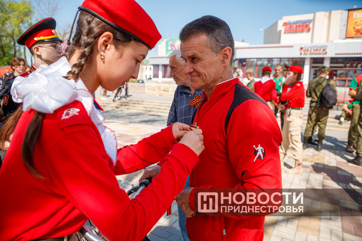 Тирасполь, 13 апреля. /Новости Приднестровья/. В Тирасполе накануне, в день 80-летия освобождения города от немецко-фашистских захватчиков, раздавали георгиевские ленточки - символ победы над фашизмом.