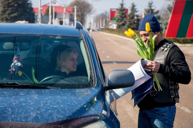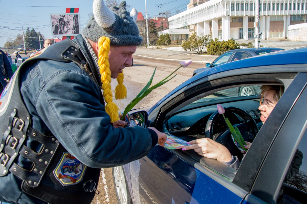 Акция уже стала доброй традицией. Сегодня она проходила в центре Тирасполя. За тем, как её участники дарили автолюбительницам улыбки и хорошее настроение, наблюдал фотокорреспондент «Новостей Приднестровья».