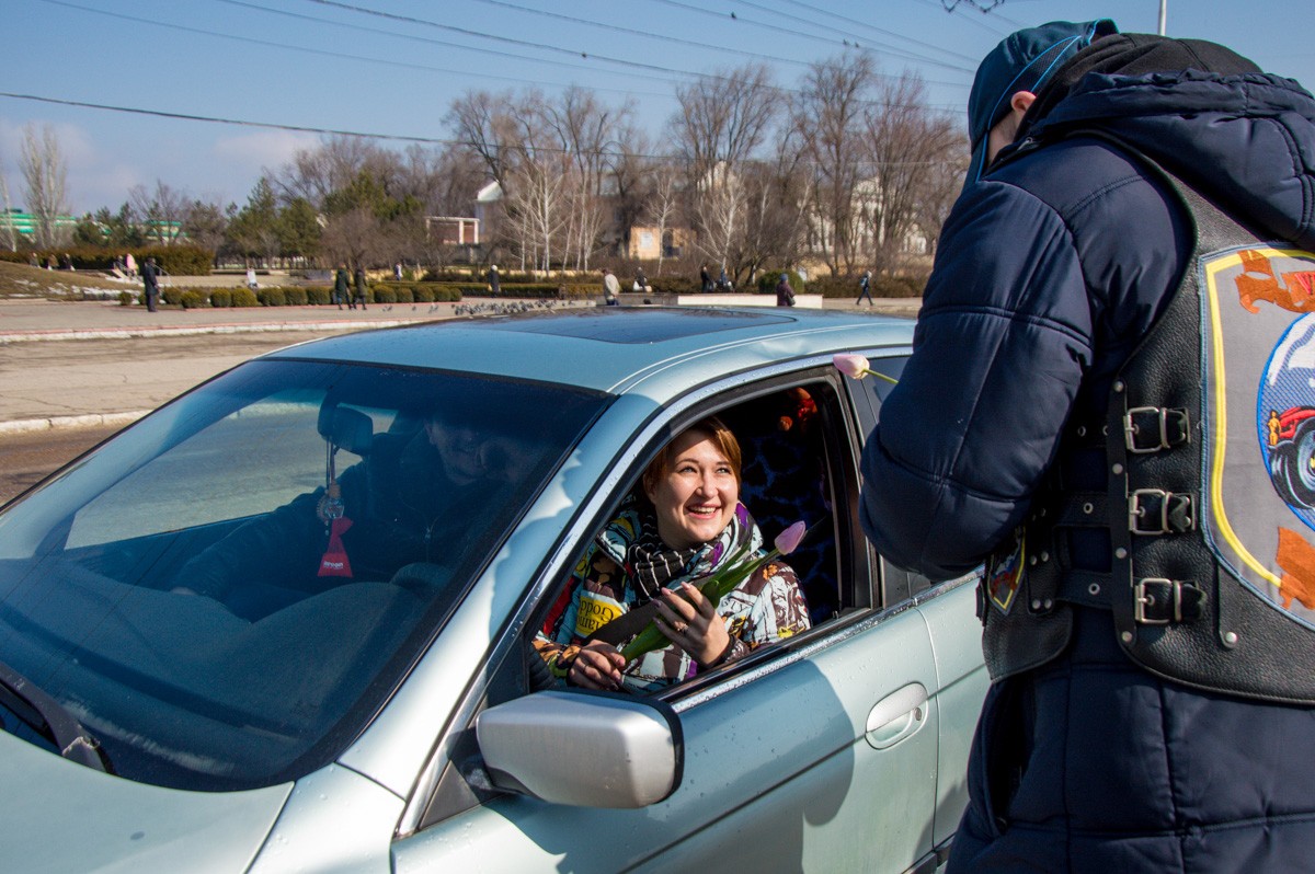 Тирасполь, 8 марта. /Новости Приднестровья/. Уже не первый год в Международный женский день байкеры и инспекторы Госавтоинспекции совместно поздравляют автоледи. Сотрудники ГАИ останавливают всех женщин-автолюбителей, но вместо стандартного требования документов они дарят дамам цветы и календари с напоминанием соблюдать скоростной режим. Внимательны к автоледи и рыцари дорог: они поздравляют участниц дорожного движения с 8 Марта и вместе с цветами преподносят им оригинальные наклейки на автомобили.