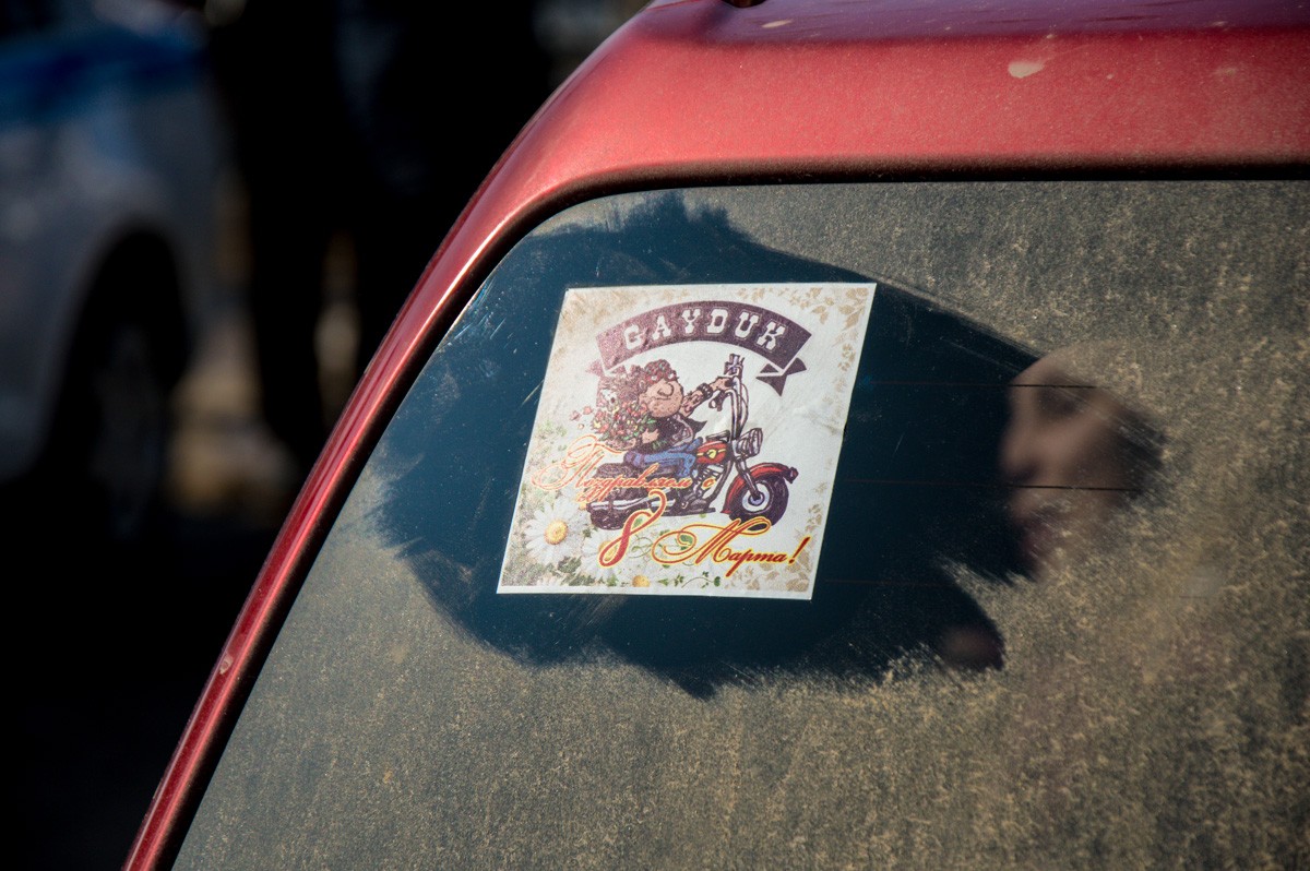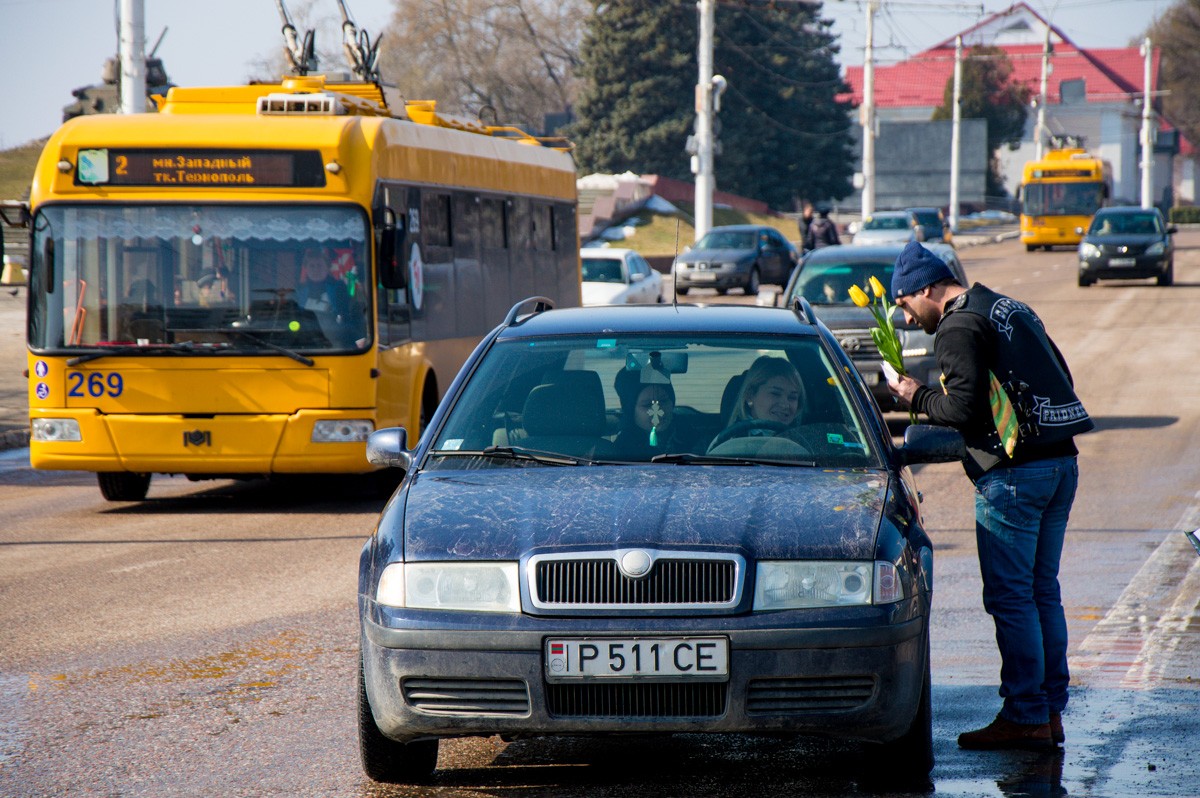 Они дарили дамам-автолюбителям цветы, оригинальные наклейки на машины и календари с напоминанием соблюдать скоростной режим
