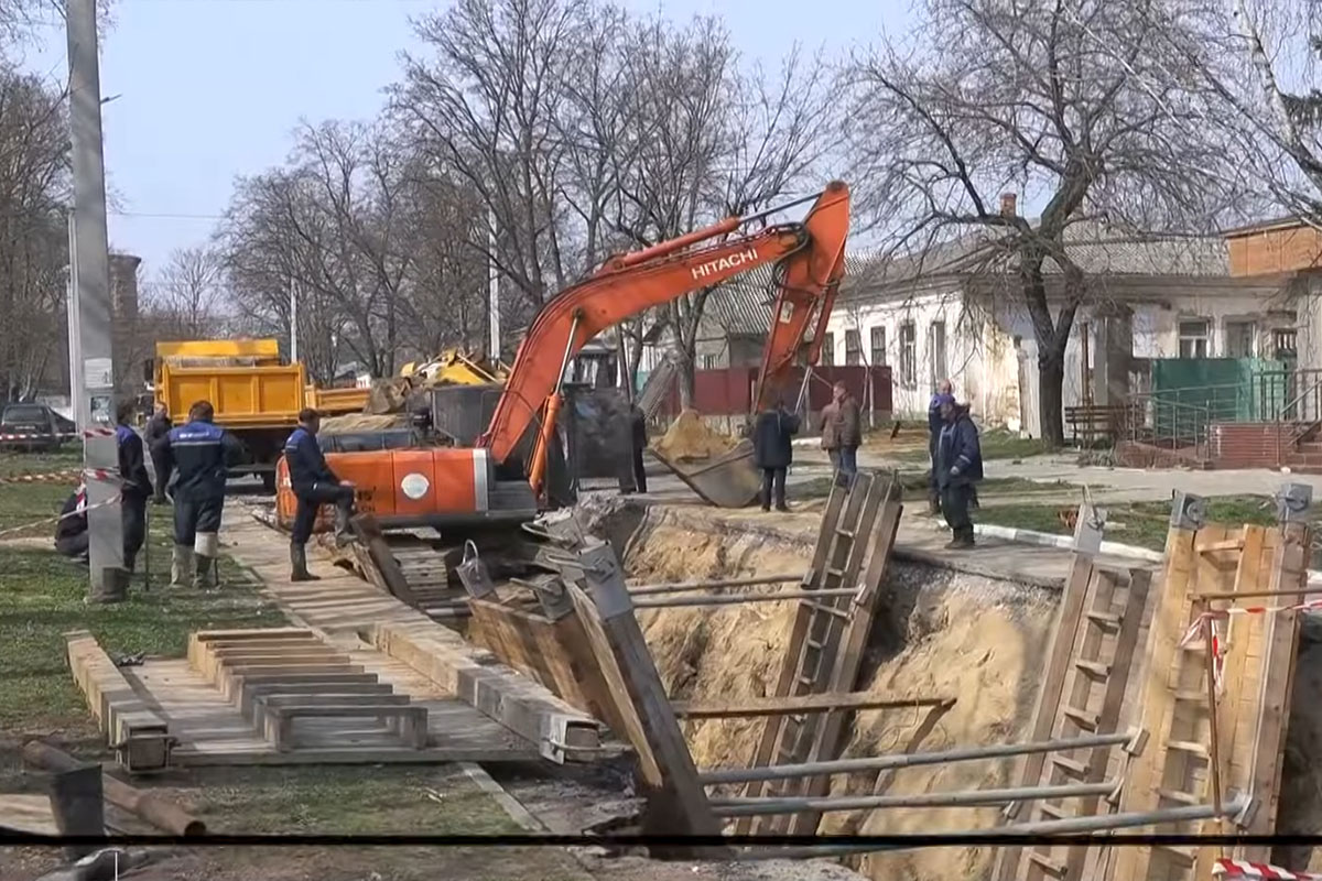 «На выходных произошло обрушение части канализационного коллектора диаметром 600 мм в переулке Христофорова и переулке Энгельса, - пояснил генеральный директор предприятия "Водоснабжение и водоотведение" Владимир Ботнарь. – Сегодня мы вскрыли место аварии. На глубине 7 метров находится весь канализационный коллектор. Производится полная замена на полиэтилен. Это позволит устранить аварию».