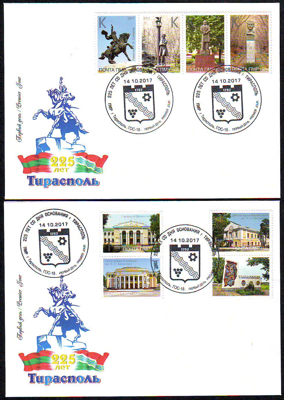 Новая коллекция к 225-летию Тирасполя состоит из 8 марок, на которых изображены 4 памятника и 4 исторических здания.