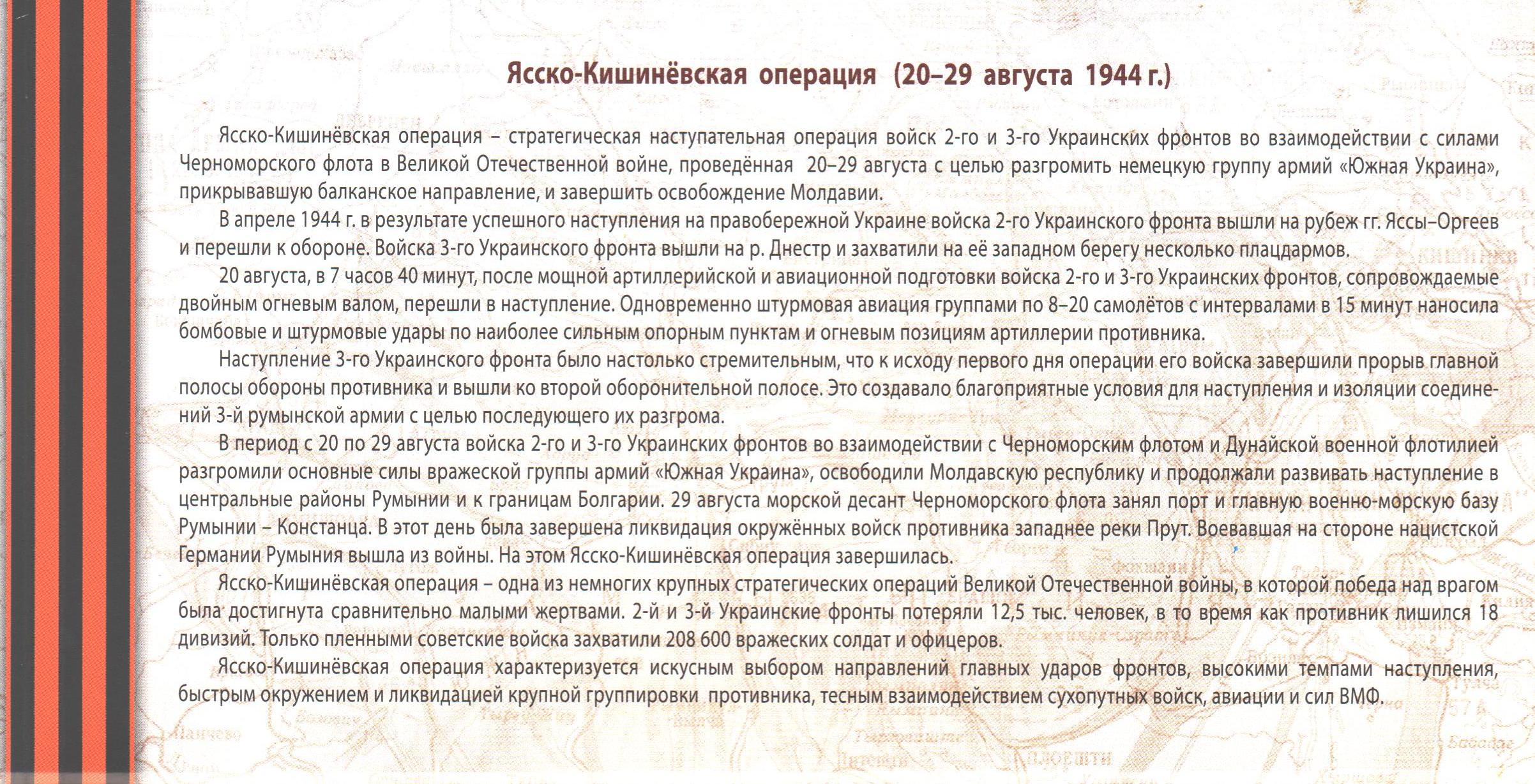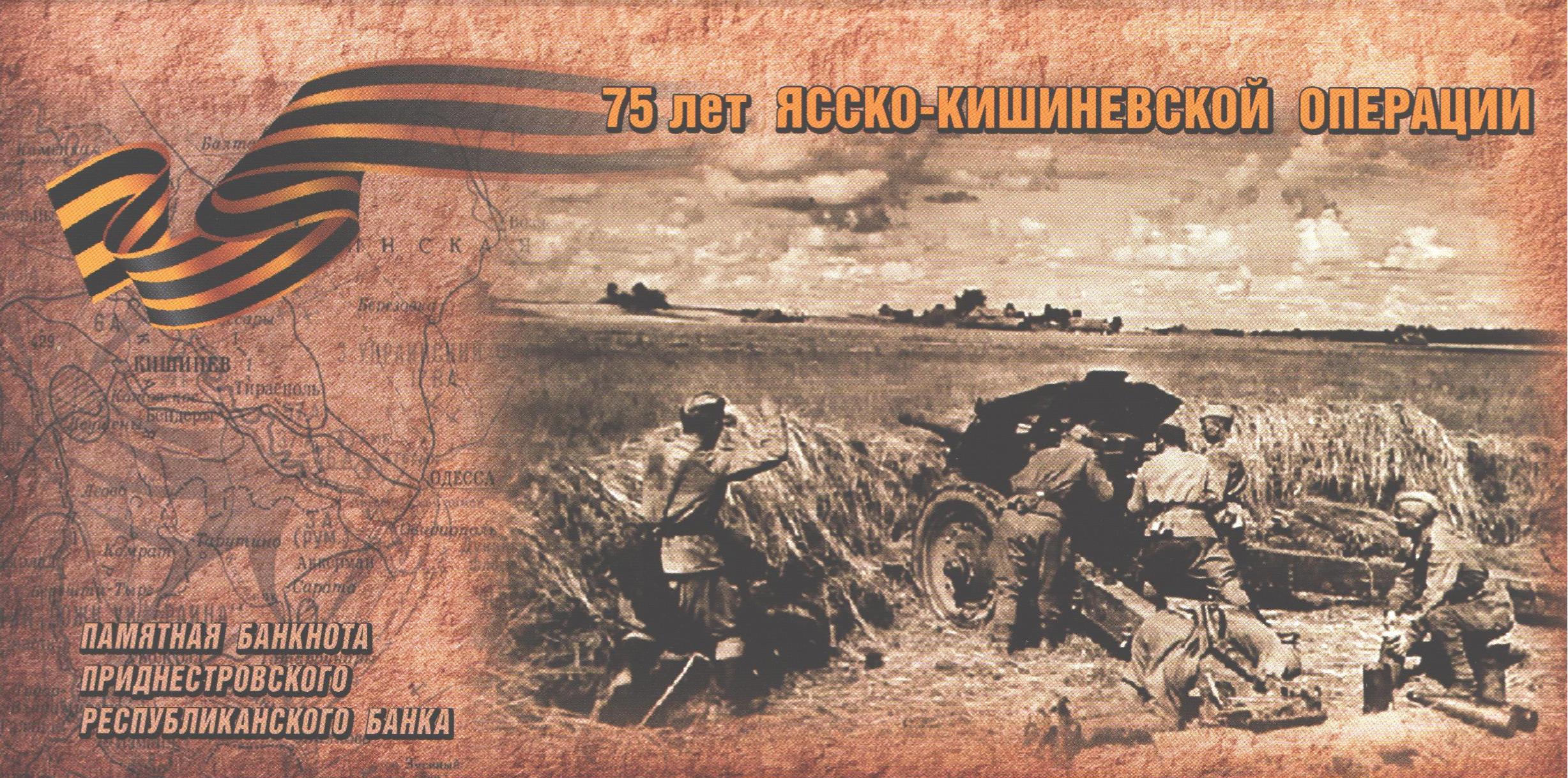 Отметим, что памятные банкноты «75 лет Ясско-Кишинёвской операции» являются законным средством обращения и платежа на территории Приднестровья, обязательны к приёму по нарицательной стоимости во все виды платежей всеми организациями независимо от формы собственности и сферы деятельности.