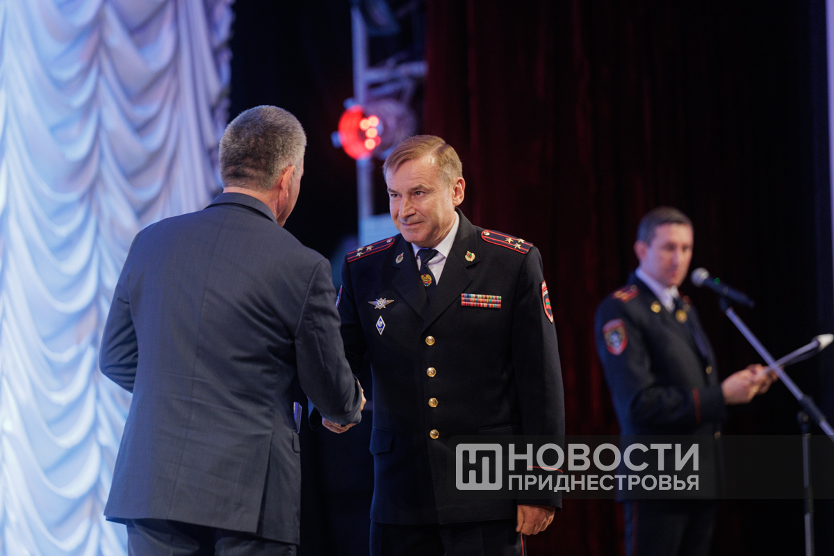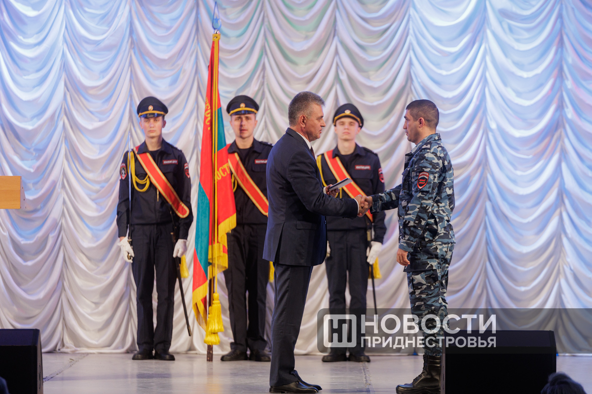Со сцены присутствующих с профессиональным праздником поздравил Президент ПМР Вадим Красносельский. Он подчеркнул, что основой формирования приднестровских органов внутренних дел стала советская милиция.
