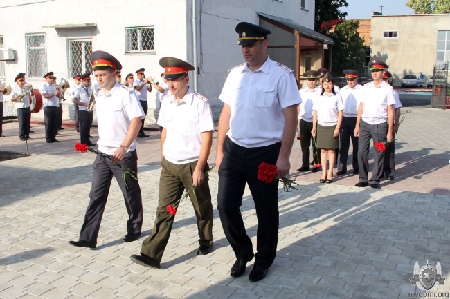 Тирасполь, 29 августа. /Новости Приднестровья/. В Министерстве внутренних дел сегодня прошло торжественное мероприятие, приуроченное ко Дню Республики. Началось оно традиционно с возложения руководителями подразделений ведомства цветов к мемориалу памяти МВД.
