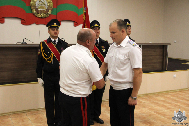 Сегодня же торжественное совещание, посвящённое 28-й годовщине образования Приднестровья, прошло и в УВД Тирасполя. Ряду сотрудников, добившихся высоких результатов в служебной деятельности, были присвоены внеочередные специальные звания, вручены почётные грамоты.