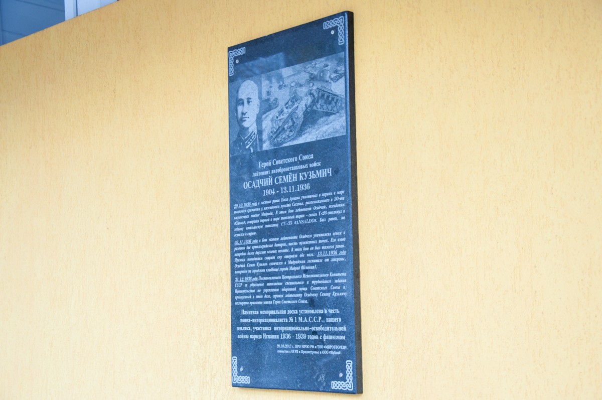 В честь Героя СССР Семёна Осадчего открыли памятную доску