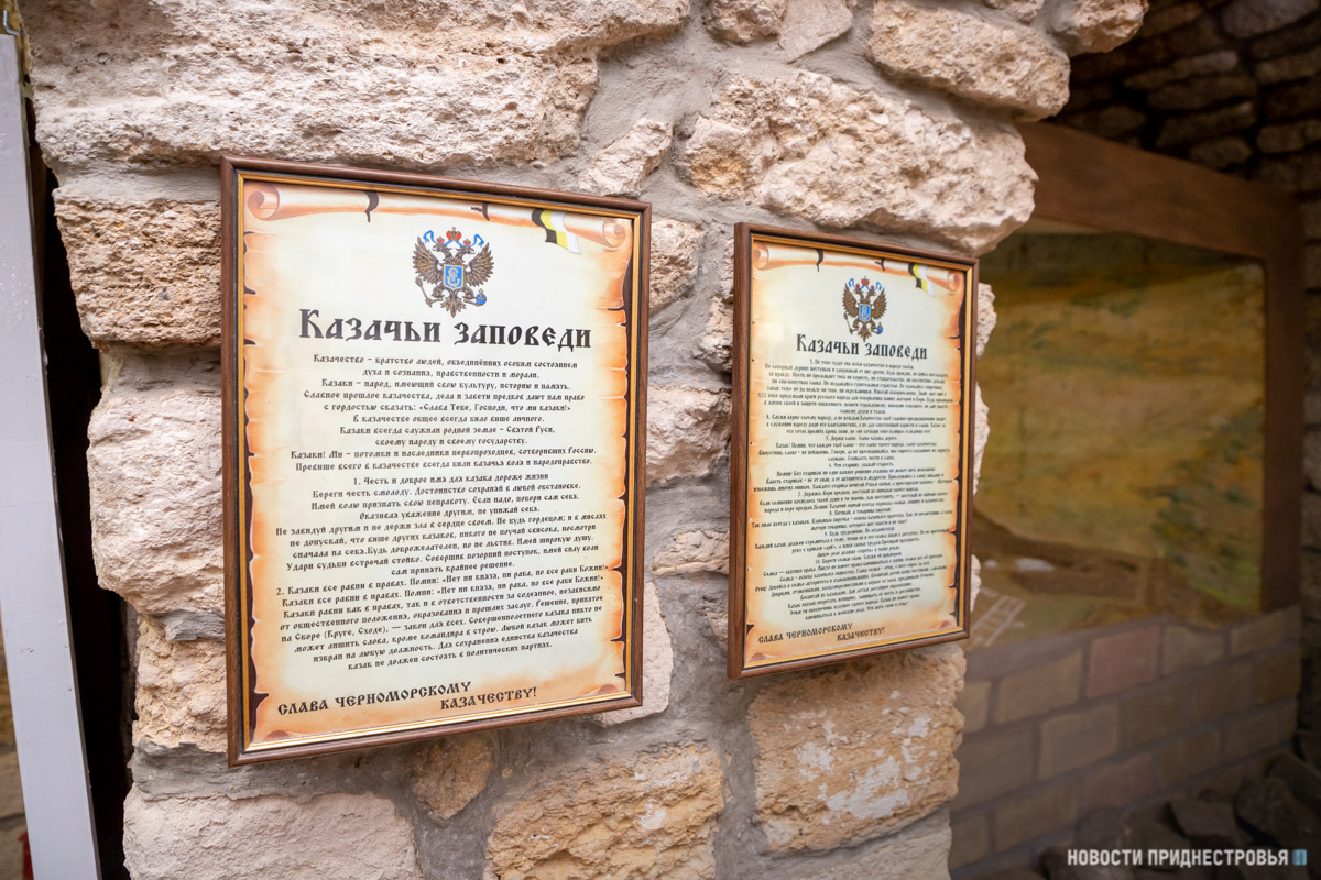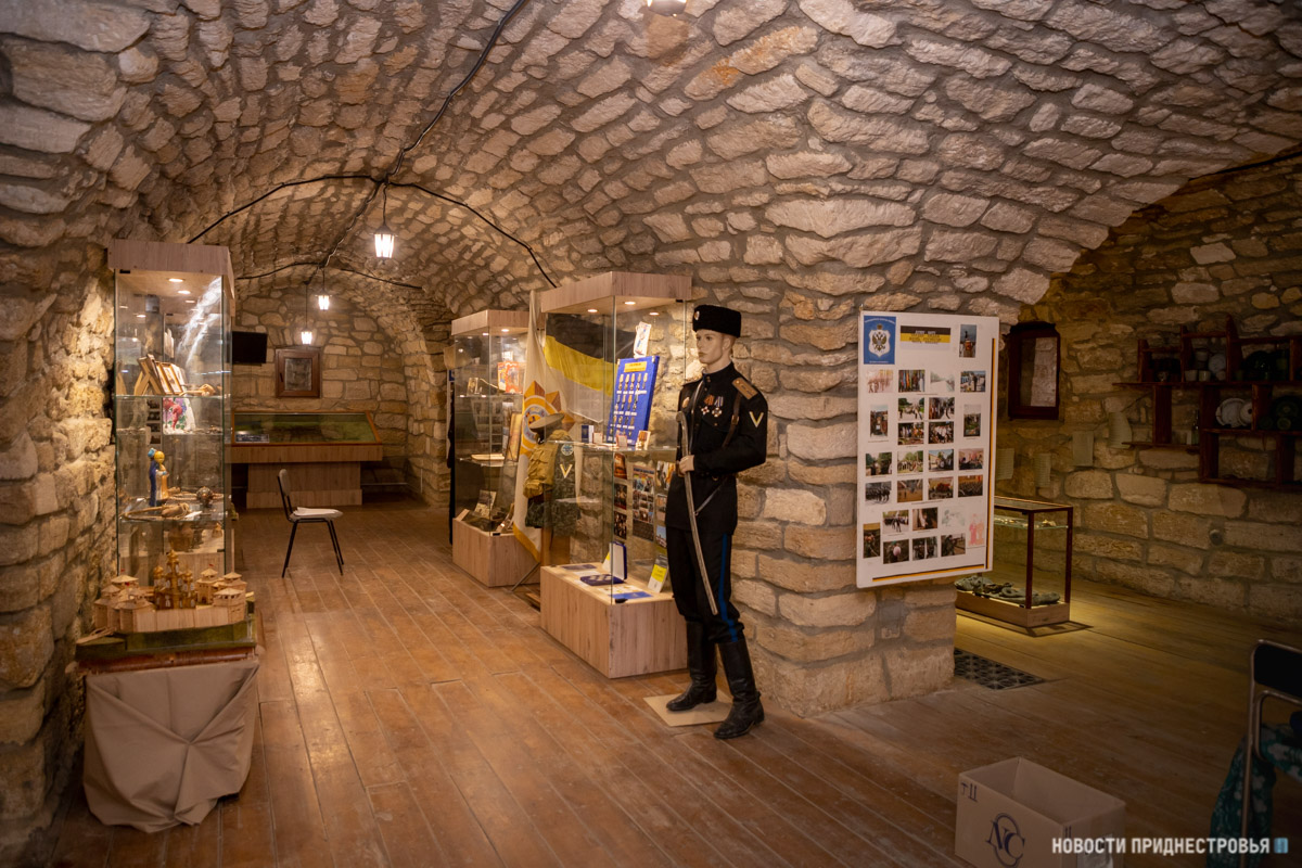 «Неспроста мы открыли её именно здесь, ведь казаки в том числе принимали участие в строительстве Тираспольской крепости. Постарались отобразить исторические периоды начиная с образования ЧКВ в 1787 г. Немного попытались дать информации по Первой мировой войне и, конечно же, не могли не затронуть момент возрождения – 1990-е годы и современность. Здесь есть предметы военного быта, обмундирование, оружие, рисунки с примерами того, как селились и жили казаки по типу коша 16-го века и станицы 17-го века. Есть экспонаты, отражающие переселение казаков на Кубань», – рассказал заведующий музеем истории Тираспольской крепости Коняхин Денис.