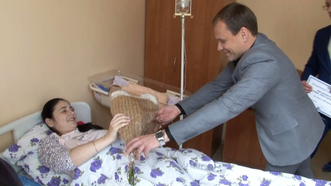 Рыбница, 22 ноября. /Новости Приднестровья/. В День города в Рыбнице появился на свет один маленький горожанин. Сегодня ребёнка и его маму поздравил глава госадминистрации Вячеслав Фролов.