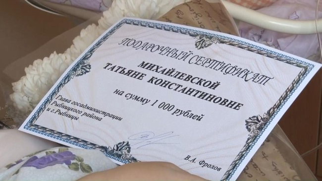 В подарок от госадминистрации семье вручили сертификат на приобретение детской одежды