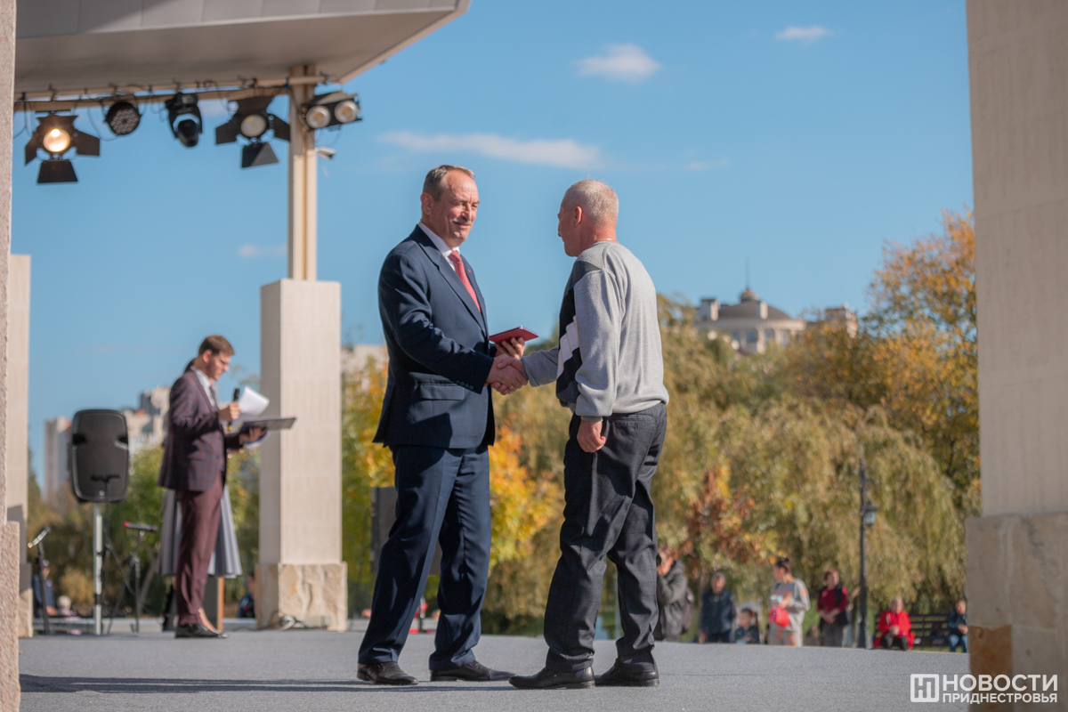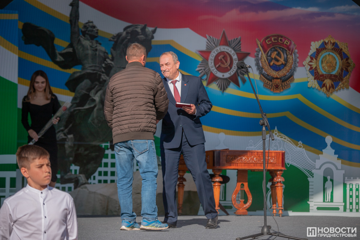 Также каждый год одному из тираспольчан присваивают звание Почётного гражданина Тирасполя. В этом году по итогам онлайн-голосования им стал Анатолий Большаков, в своё время руководивший заводом им. Кирова. Всего у Тирасполя уже 25 почётных граждан. В этом году для них разработали специальный нагрудный знак и удостоверение. Одному из первых их вручили гендиректору ЗАО KVINT Олегу Баеву. Он стал Почётным гражданином Тирасполя полтора десятка лет назад. Руководитель тираспольского винно-коньячного завода подчеркнул, что история предприятия шла параллельно с историей города.