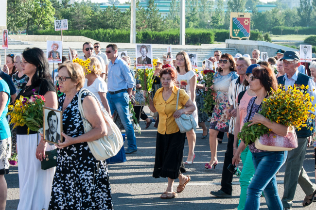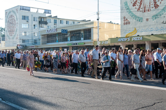 Тирасполь, 1 августа. / Новости Приднестровья/. 1 августа — День памяти и скорби по погибшим и умершим от ран защитникам Приднестровья. В этот день колонна «Бессмертного полка» с фотографиями героев в руках прошлась по главной улице Тирасполя.