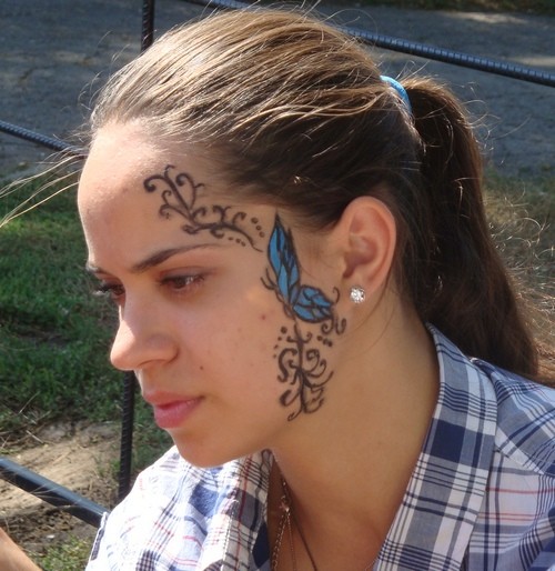 Рядом расположились участники народной студии боди-арта «Этюд». Они красками разрисовали лица детям. Времени такое удовольствие занимает меньше, да и стоит гораздо дешевле – всего пять рублей.