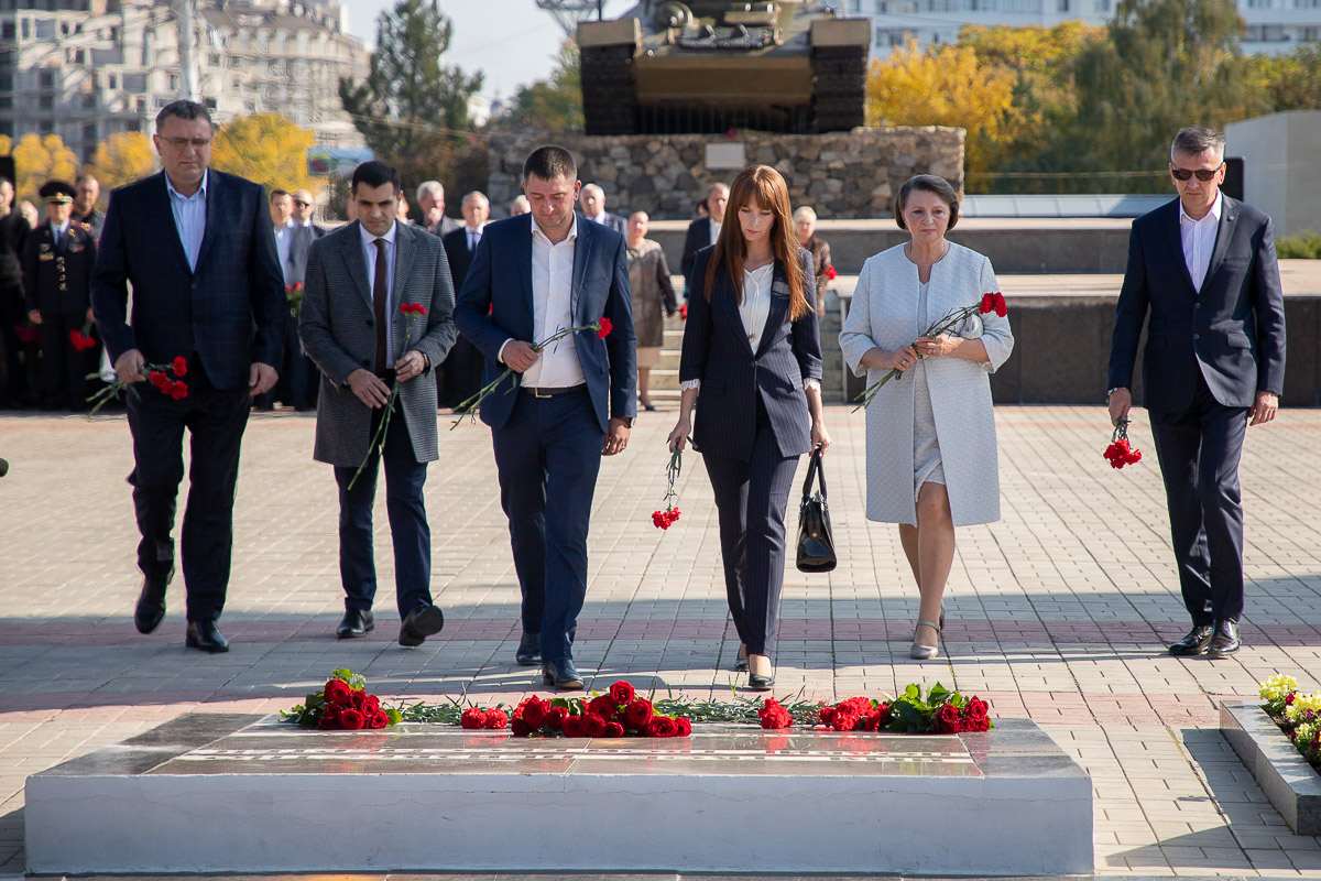 По завершении молебна тираспольчане и гости города возложили цветы к плитам Мемориала Славы. В церемонии приняли участие члены Правительства, депутаты Верховного Совета, руководство города, представители общественных организаций. Среди почётных гостей – делегации из российских городов-побратимов приднестровской столицы: Калуги и Курска.