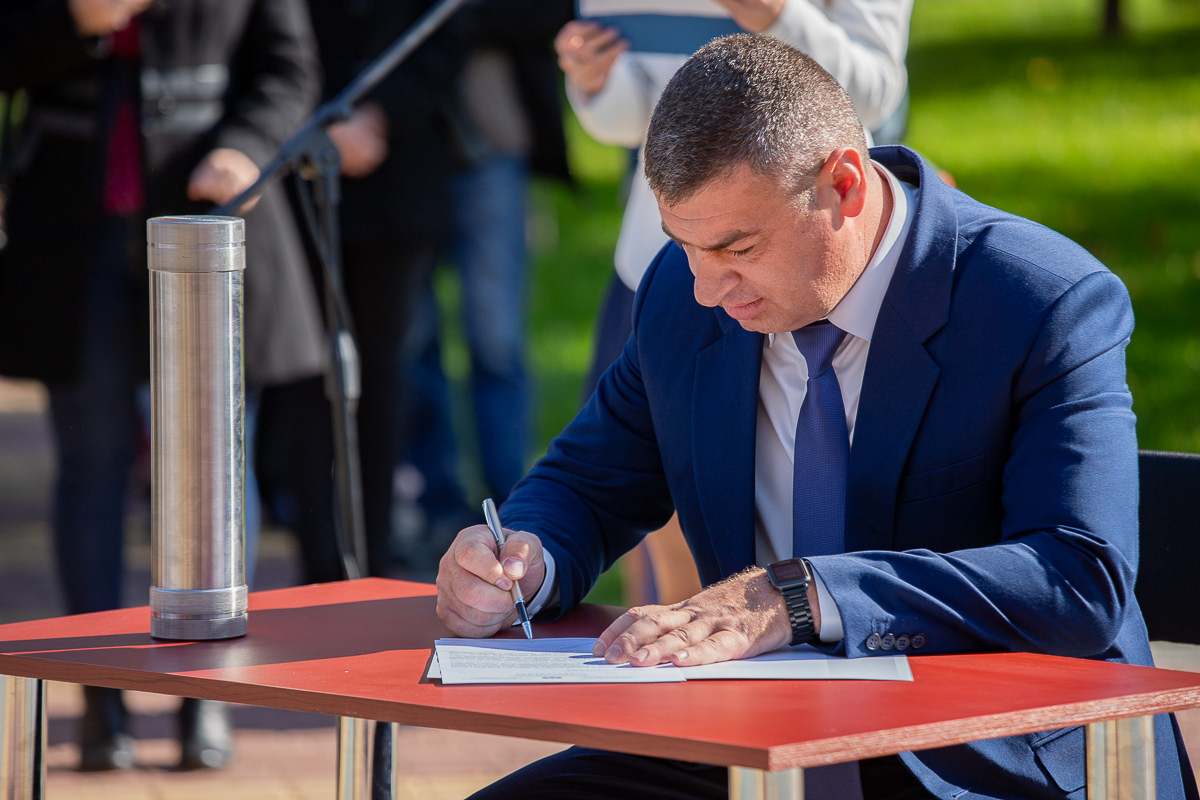Почётное право закладки капсулы по распоряжению Олега Довгопола было предоставлено учащимся Суворовского училища Даниилу Клецу и Владимиру Тодерашко.