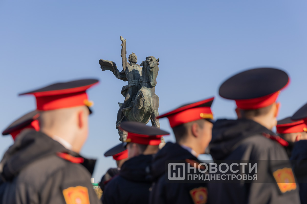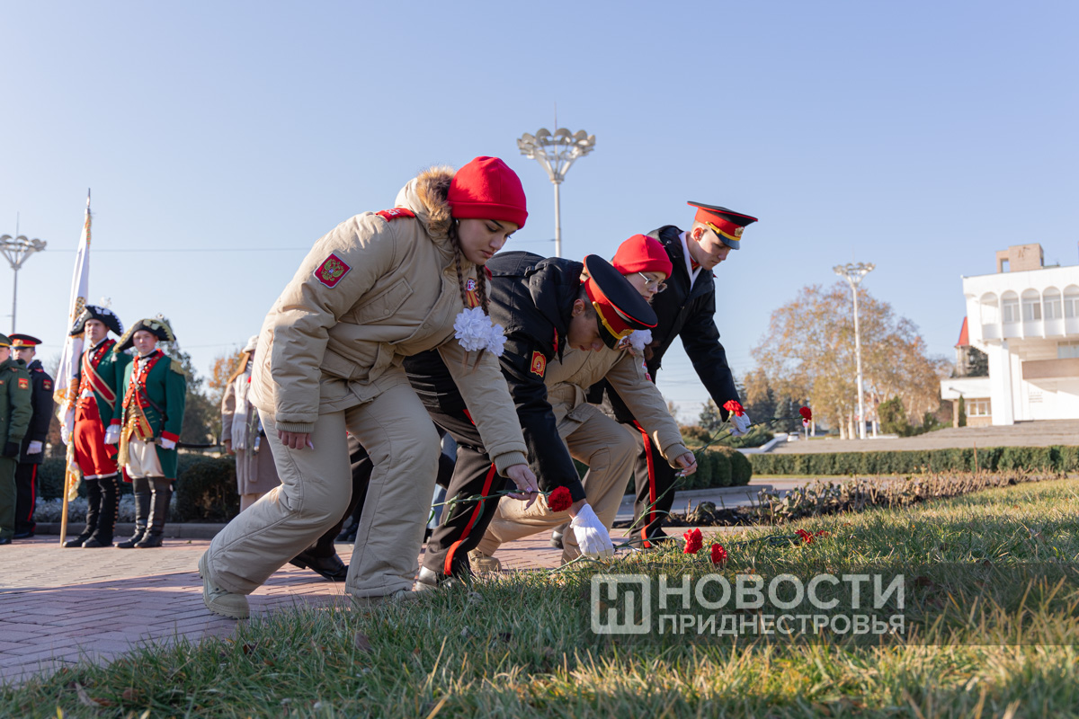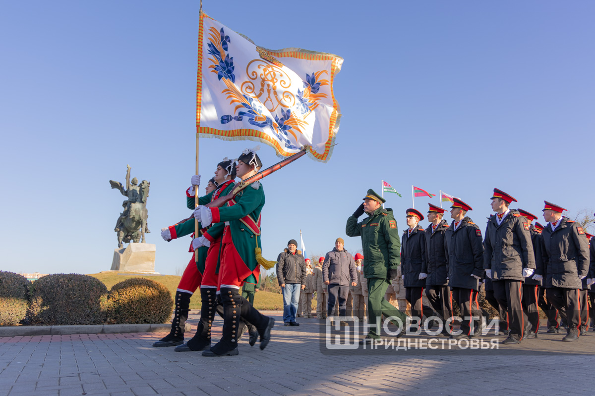 Тирасполь, 24 ноября. /Новости Приднестровья/. Сегодня исполнилось 294 года со дня рождения выдающегося русского полководца Александра Суворова. В честь этого юнармейцы, суворовцы и студенты Приднестровского госуниверситета возложили цветы к памятнику генералиссимусу в Тирасполе.