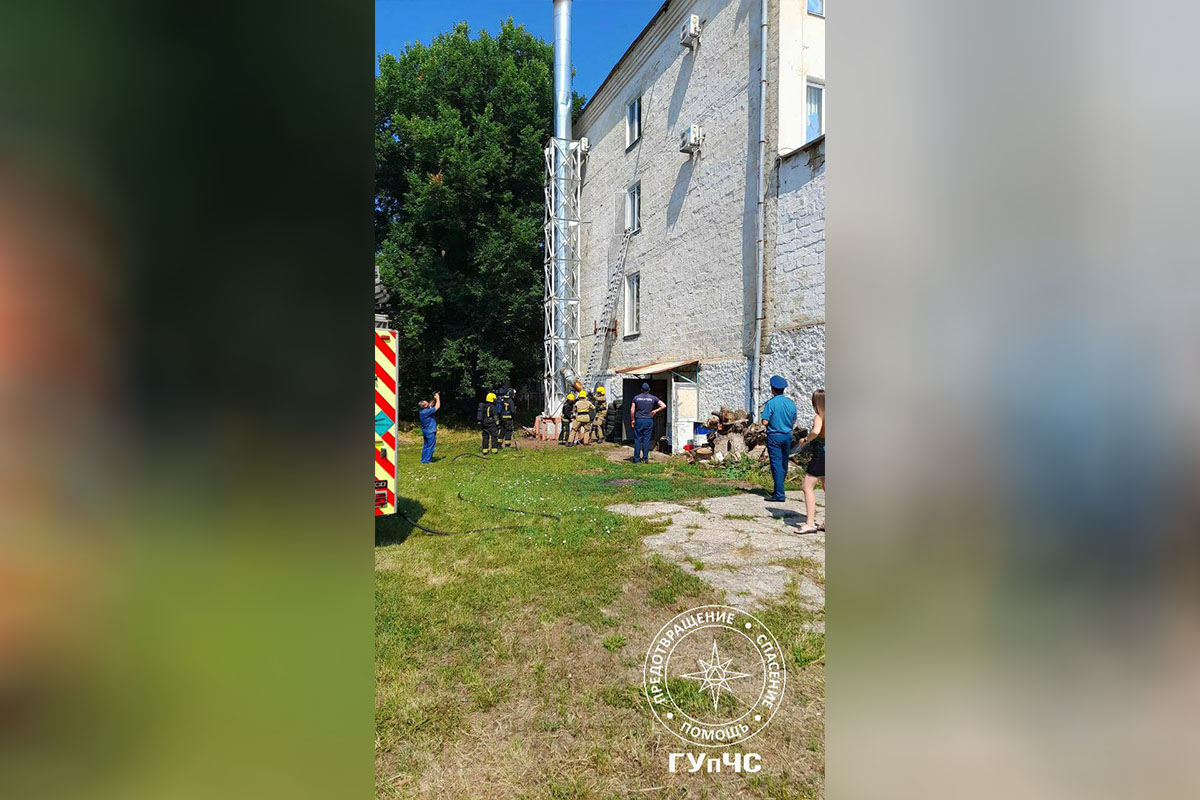 По легенде учений пламенем отрезало эвакуационные выходы на втором и третьем этажах. Огнеборцы в аппаратах сжатого воздуха по пожарной лестнице проникли через окна в комнаты, где находились пострадавшие, и эвакуировали их.
