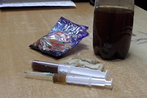 Кроме владельца жилья, оперативники застали и двух ранее судимых приятелей 38 и 40 лет. Они находились в состоянии наркотического опьянения. Милиционеры изъяли шприцы с остатками светло-коричневой жидкости, пластиковую бутылку с ацетоном, пропитанные растворителем семена мака, медицинские препараты и 7 бумажных свёртков с измельчённым растением.