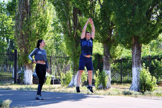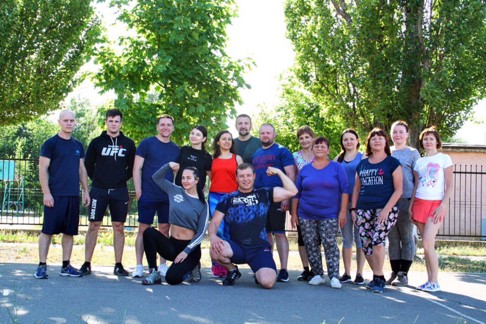 Каждое воскресенье в полвосьмого утра на городском стадионе второй школы собираются порядка тридцати человек разных возрастных категорий для того, чтобы заняться спортом. Разминку, пробежку и физические упражнения на все группы мышц проводят профессиональные фитнес-инструкторы Константин Врадий и Оксана Граненко.