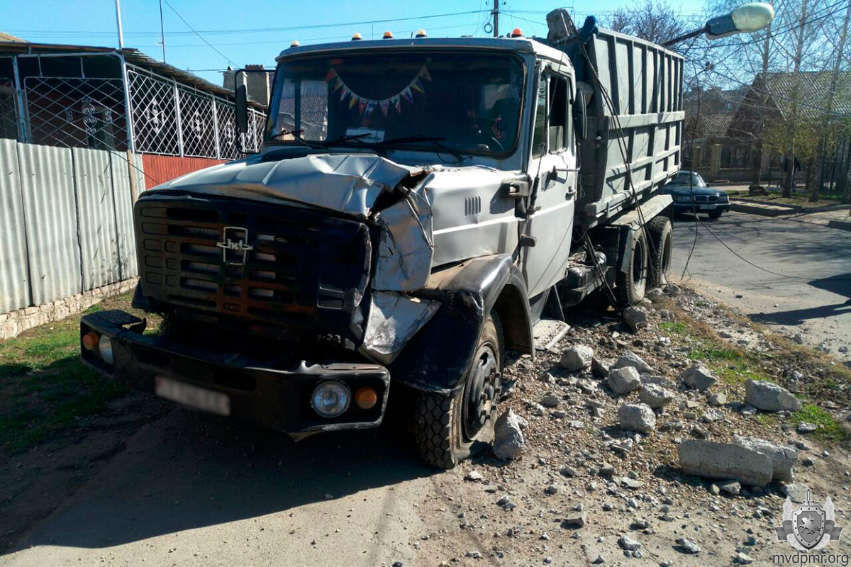 Ещё одно ДТП произошло на улице Краснодонской. Как ранее сообщалось, автомобиль марки ЗИЛ, груженный песком, врезался в электроопору. В результате чего повредил ее и обесточил ближайшие дома.