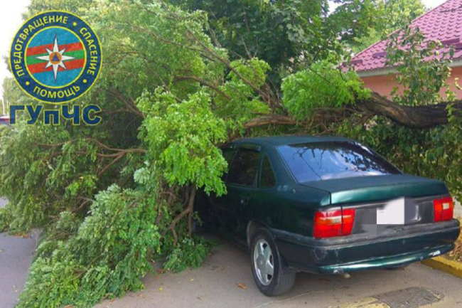 Дубоссары, 10 августа. /Новости Приднестровья/. Накануне вечером в Дубоссарах из-за сильного ливня ветка дерева упала на припаркованную машину. Часть дерева обрушилась на капот Оpel Vectra.