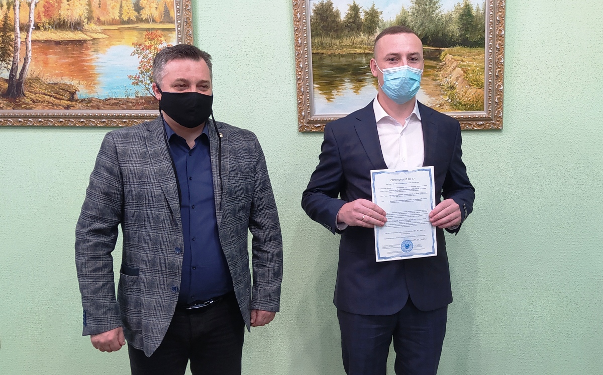 Обладателем еще одного сертификата сегодня стал тренер-преподаватель дубоссарской спортивной школы № 2 Андрей Катеренчук. Ему тоже 27 лет, полтора года назад он создал свою семью и вместе с супругой Дориной растит двухмесячного сына Михаила. Андрей родом из села Гармацкое, с детства любит футбол и уже осуществил одну из своих целей в жизни – стал тренером-преподавателем в спортивной школе. В свободное время молодой наставник играет и за футбольную команду города. Молодые супруги мечтают о двухкомнатной квартире.