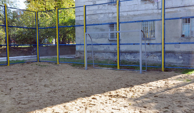 Старая площадка в этом дворе находилась в аварийном состоянии. По поручению главы госадминистрации были начаты монтажные работы. Сейчас специалисты устанавливают футбольные ворота и красят ограждение. Сегодня ход работ на объекте проверил глава госадминистрации Руслан Чабан.