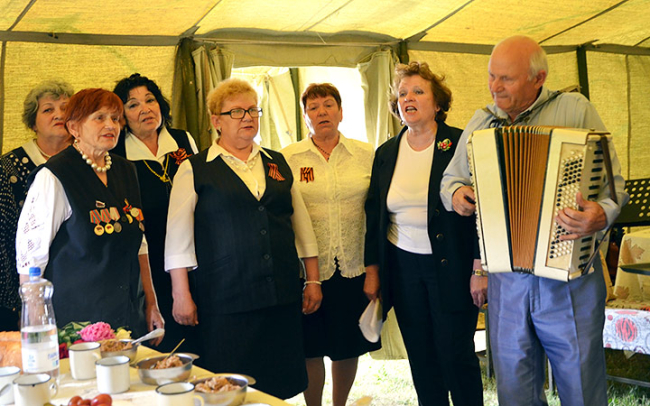 Ветераны дегустировали гречневую кашу с тушенкой и с удовольствием пели военные песни