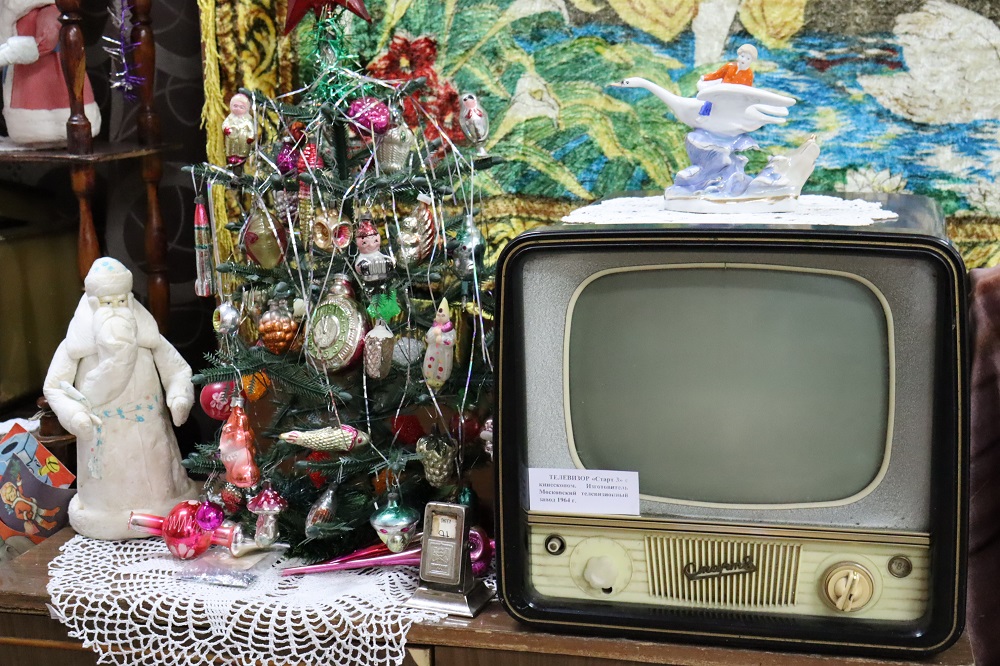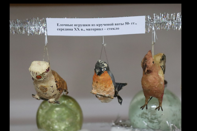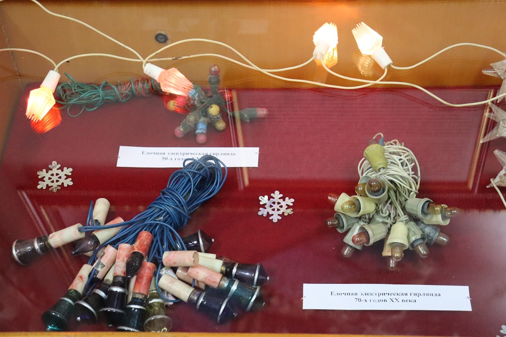 В экспозициях представлено большое разнообразие елочных игрушек, украшений, открыток и других новогодних атрибутов XX и XIX веков. Большую коллекцию новогодних игрушек помогли собрать музею и местные жители, которые передавали в дар интересные предметы. Разноцветные шары, сосульки, шишки, хорошо прорисованные клоуны и волшебники, герои сказок выпускались на советских фабриках, украшали каждую советскую елку и прекрасно сохранились до наших дней.