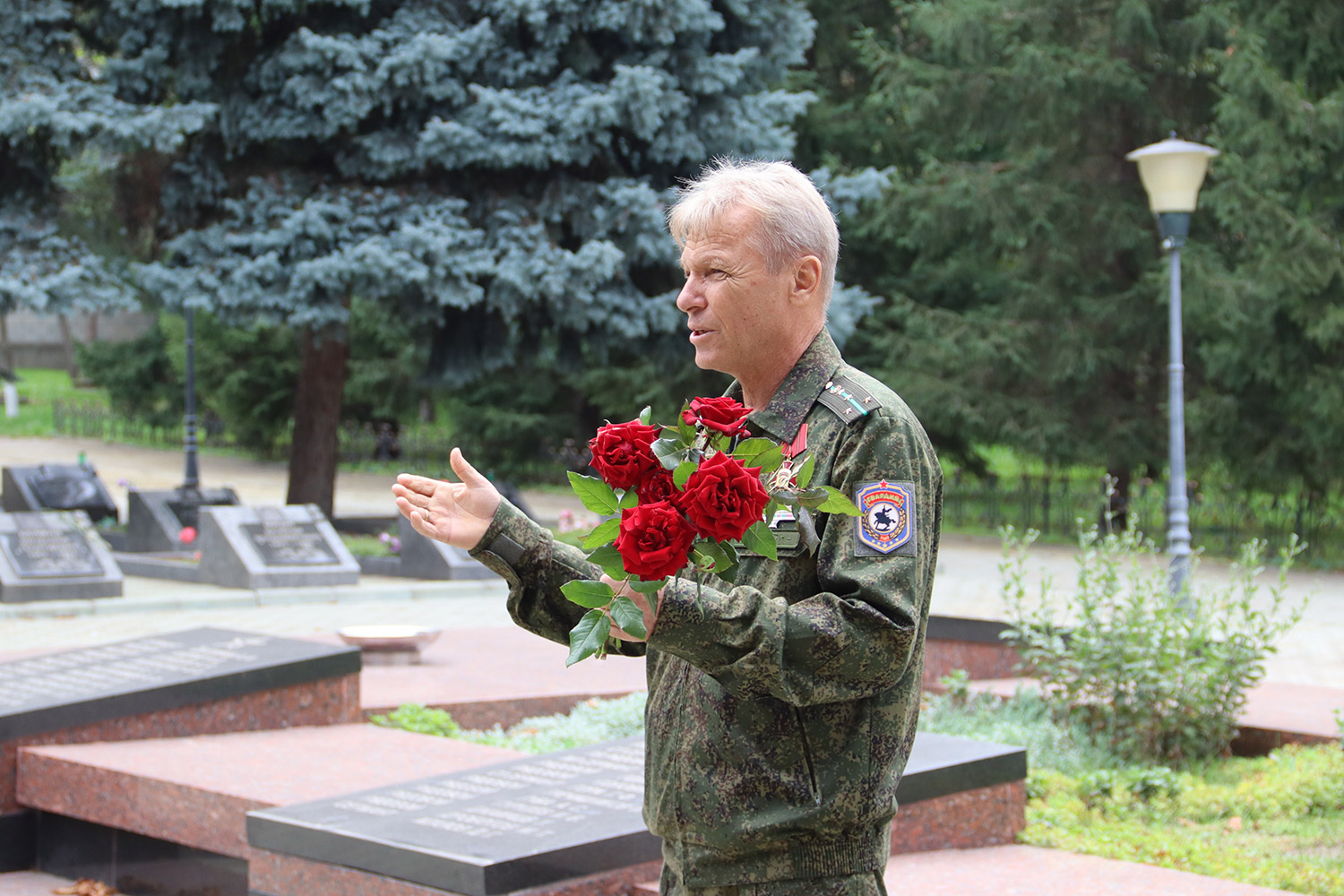 Ветераны гвардии почтили память товарищей по оружию и возложили к гранитным плитам цветы.