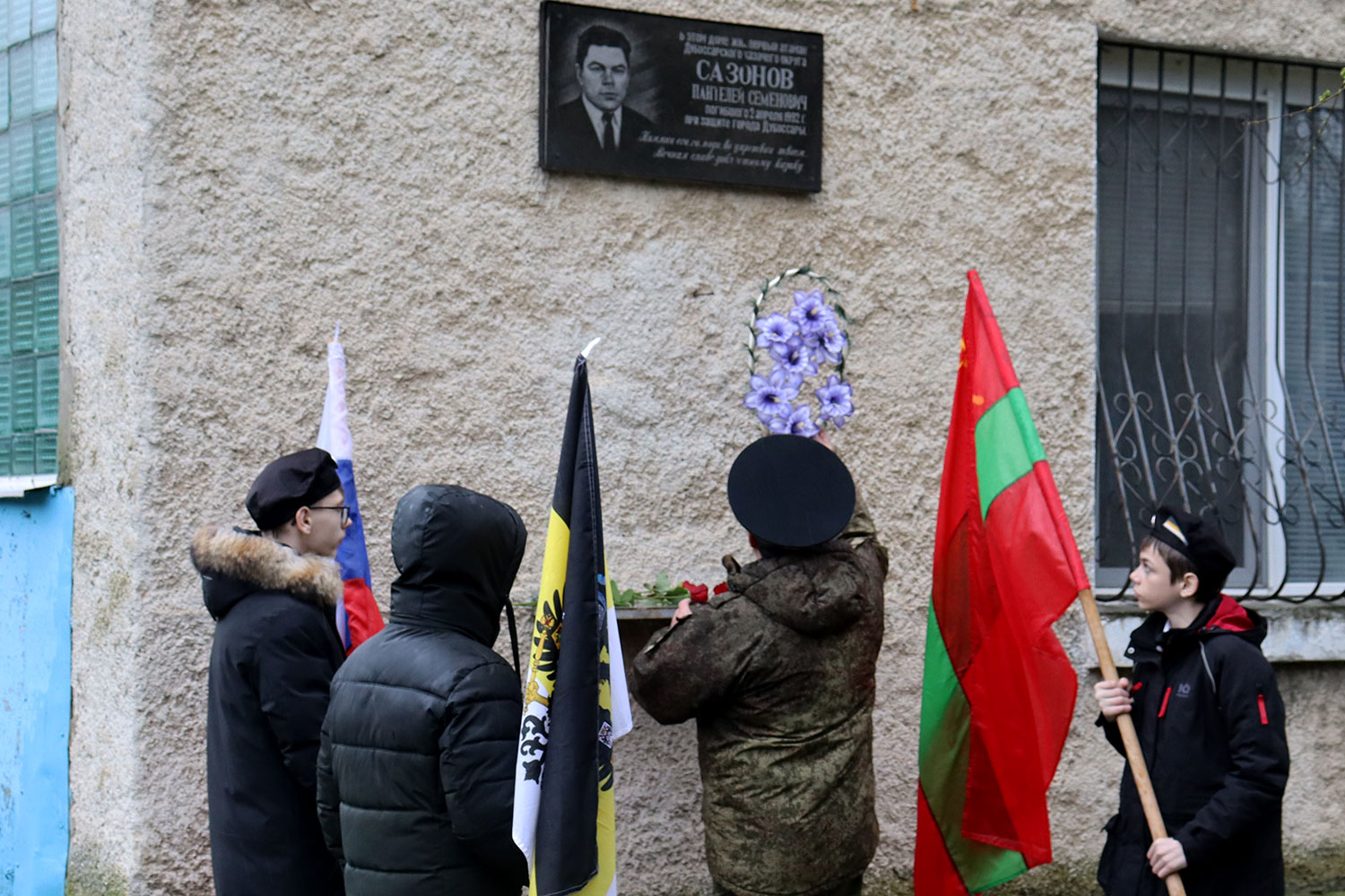Живые цветы легли и к гранитной плите, установленной на доме, где проживал Пантелей Сазонов, а также в укрепрайоне Дубоссарской ГЭС, на месте, где установлен памятный знак.