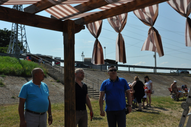 Продолжается и благоустройство пляжа у Дубоссарской ГЭС. В этом году здесь впервые были сооружены перголы и шезлонги, а недавно на деревянных конструкциях установлены теневые навесы. Глава госадминистрации Руслан Чабан дал ряд поручений руководителю местного коммунального хозяйства, а также пообщался с отдыхающими на пляже.