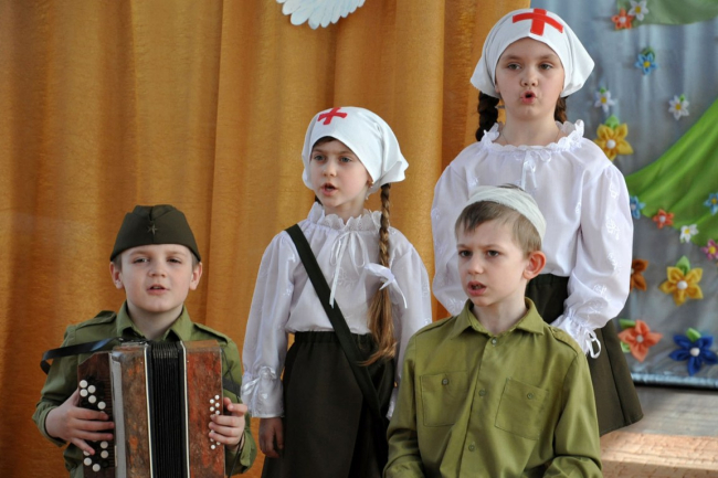 В номинация «Попурри военных песен» среди учащихся 1-4 классов лучшими были признаны школы № 4 и № 5, второй стала СШ № 3, третье место заняли СШ №7 и ученики из села Цыбулевка.
