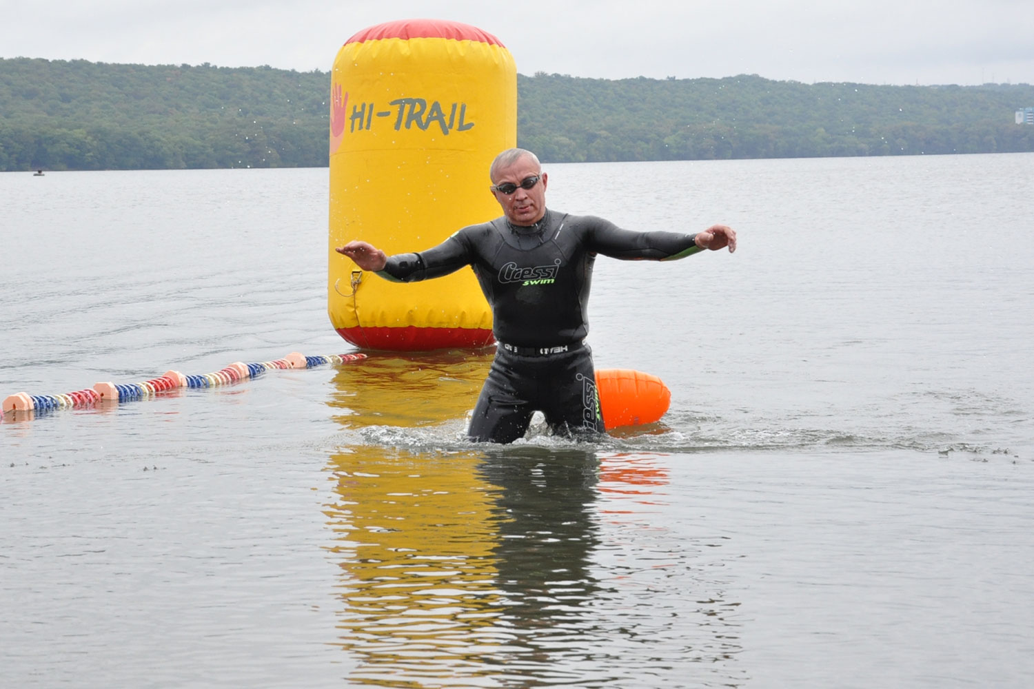 Возраст от 12 лет до 60+. Дистанций три: 500, 1500, 3000 метров. Дождь и температура воды у берега +21 градус не испугали пловцов.