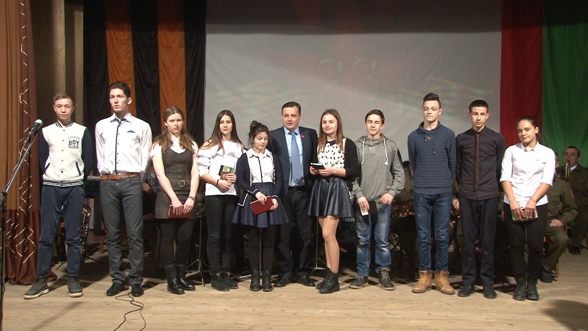 Дубоссары, 21 февраля. /Новости Приднестровья/. В Дубоссарском ДДЮТ состоялись торжественное собрание и праздничный концерт, посвященные 100-летию создания Рабоче-крестьянской Красной Армии и Дню защитника Отечества. В зале собрались ветераны Великой Отечественной войны, представители Вооруженных сил, защитники Приднестровья, воины-интернационалисты и руководство района. С наступающим праздником поздравил присутствующих глава Дубоссарского района Руслан Чабан.
