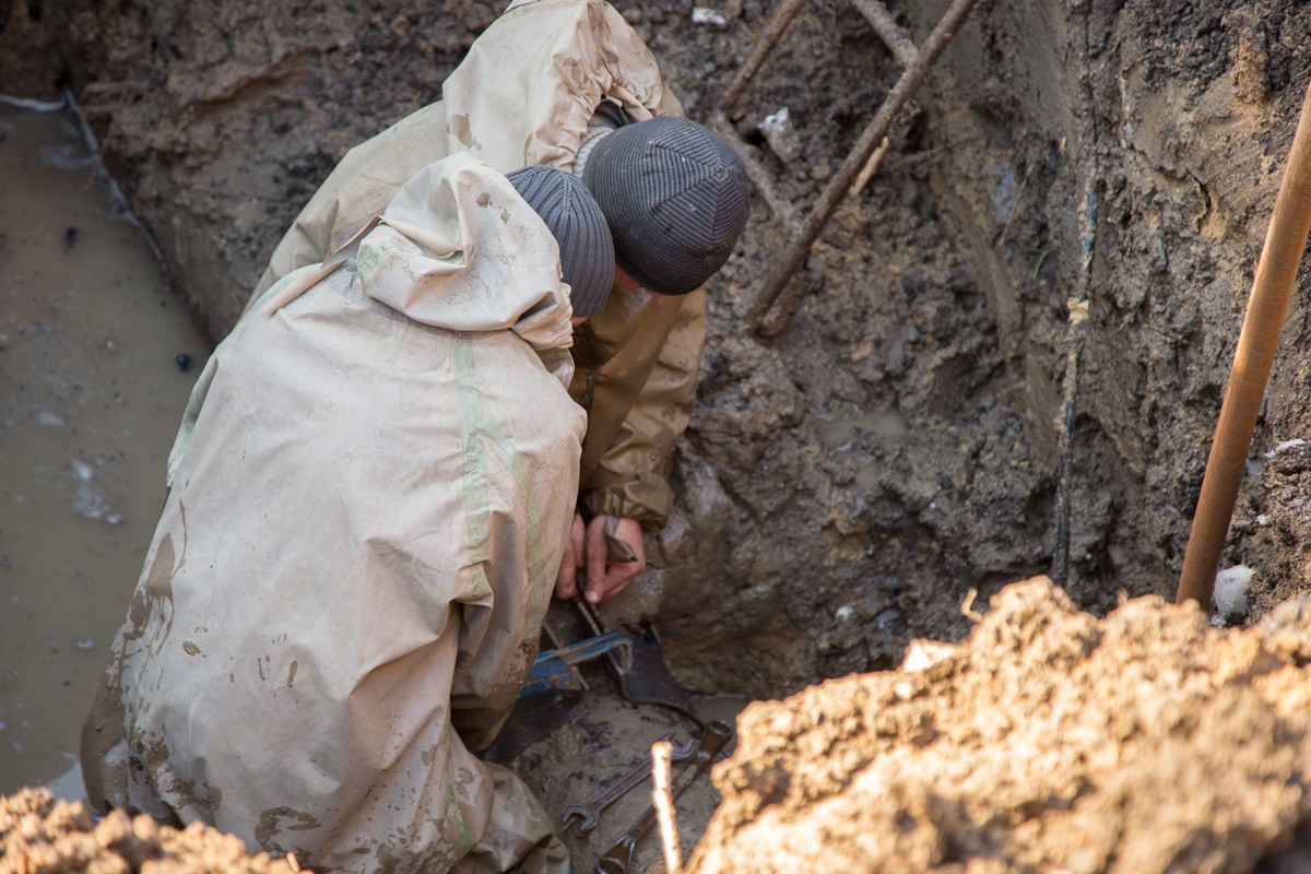Сотрудники дубоссарского филиала ГУП «Водоснабжение и водоотведение» проводят ремонтно-восстановительные работы.