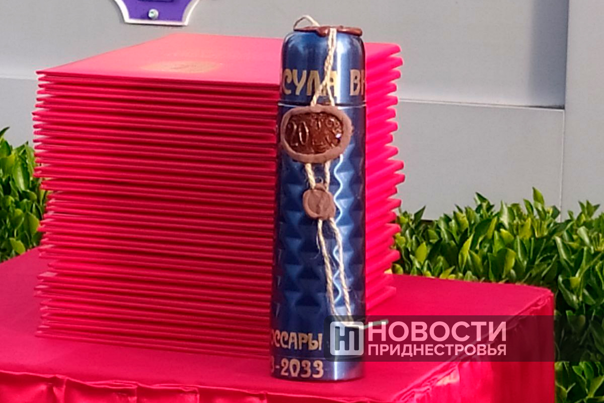 В Капсуле времени – послание молодых дубоссарцев, которое было написано в августе этого года на Фестивале молодёжи. Письмо в будущее будет храниться в специальном камне в сквере у площади Победы, рядом с Доской почёта.