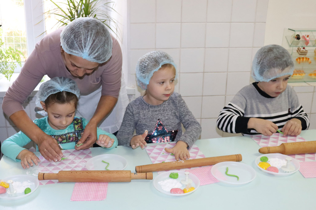 Для малышей мастера производственного обучения Галина Яловенко и Вячеслав Крачун провели мастер-класс по изготовлению осенней композиции из сахарной мастики.