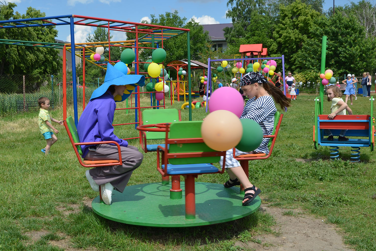 Сегодня на площадке было многолюдно. Вместе с детьми пришли разделить их восторг родители, бабушки и дедушки. Аниматоры управления культуры организовали для малышей конкурсы и игры. Малышей угощали мороженым.