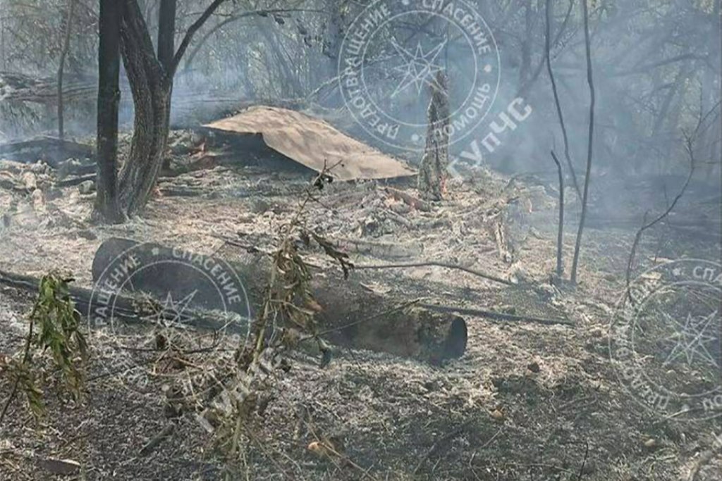 В результате пожара полностью сгорели заброшенные хозяйственные постройки, небольшая территория лесополосы и сухая трава.