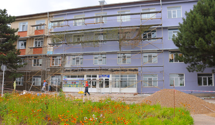 Участники выездного совещания проверили и ход строительных работ в дубоссарской поликлинике. Здание медицинского учреждения было введено в эксплуатацию в 1973 году. Несколько лет назад в нем поменяли окна и двери, а в этом году в рамках программы Фонда капитальных вложений здесь установили новую кровлю, сейчас ремонтируют входную группу и фасад.