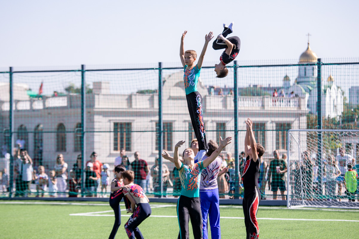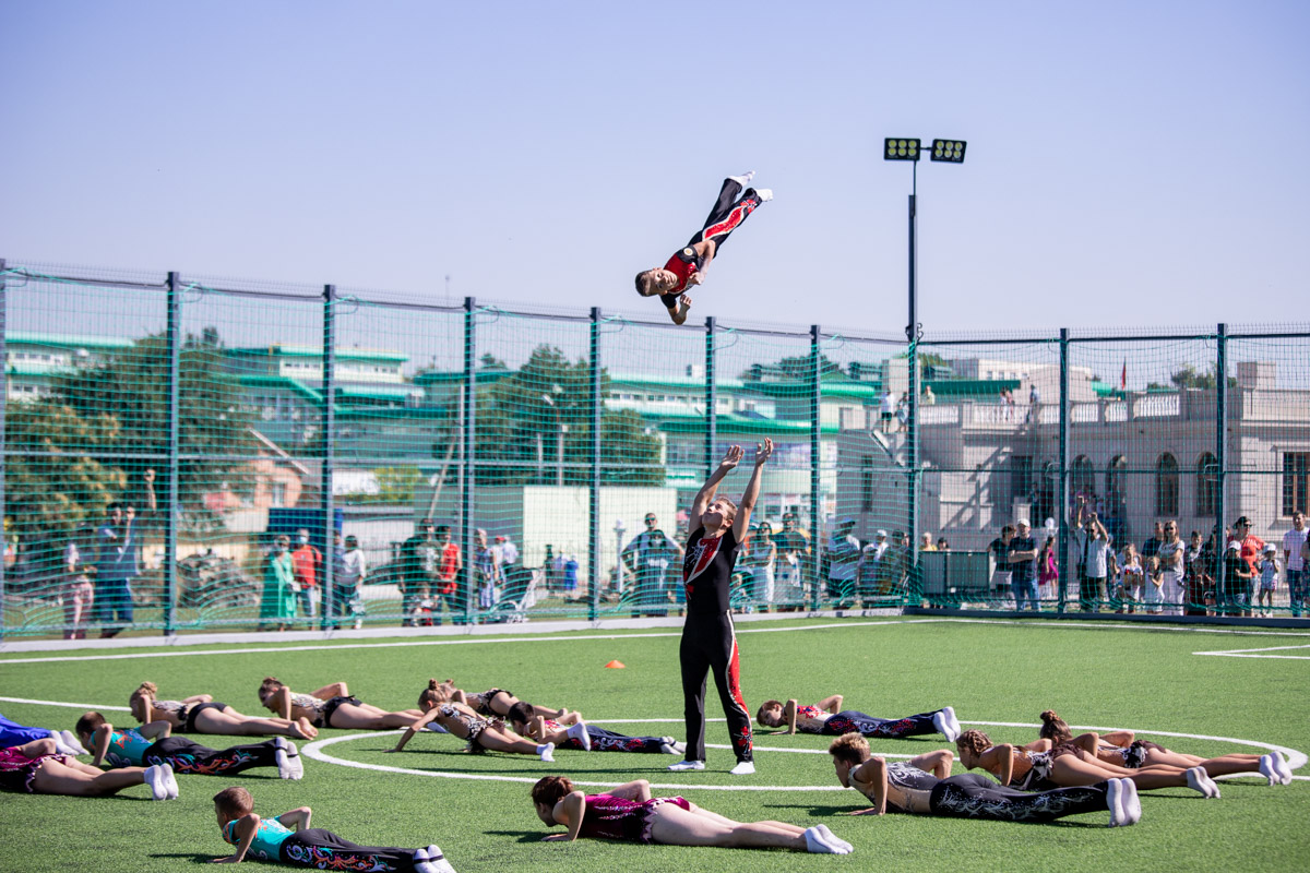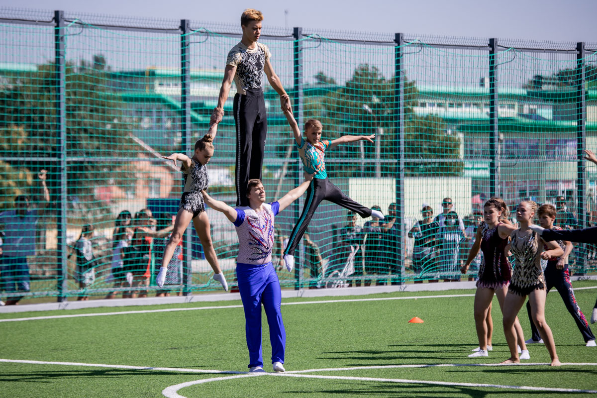 К 30-летнему юбилею республики гимнасты и акробаты подготовили подарок – два праздничных номера. От других выступлений их отличал набор сложных элементов, а также уникальные костюмы в цветах приднестровского флага.