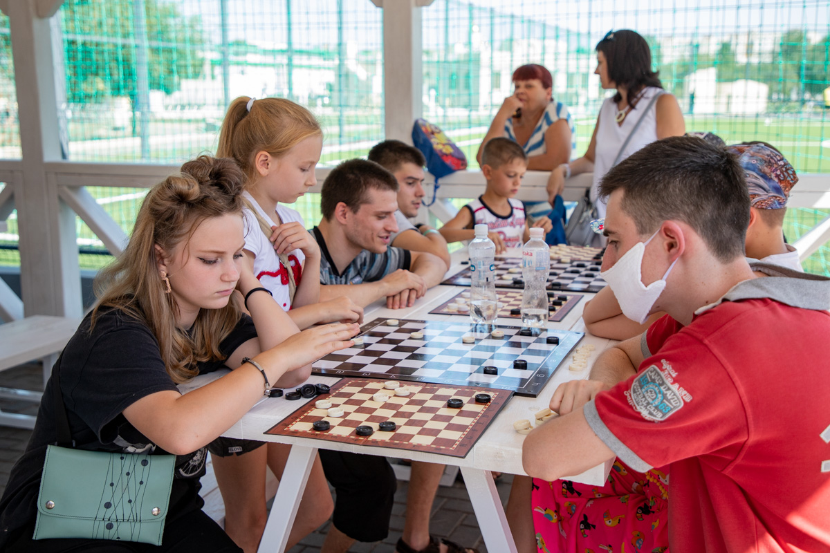Весь день в парке многолюдно. Дети и их родители гуляют в тени деревьев, кормят лебедей, играют в шахматы, занимаются спортом, наслаждаются красотой новых фонтанов.