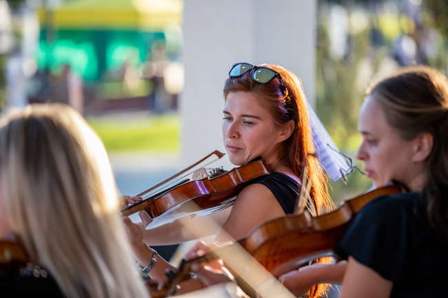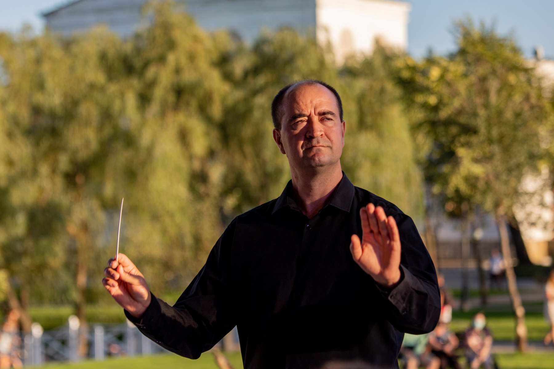«Мы очень рады, что именно мы открываем череду мероприятий, которые будут проходить в Екатерининском парке всю осень, пока будет тепло», - отметил дирижёр камерного оркестра Иван Шокодей.