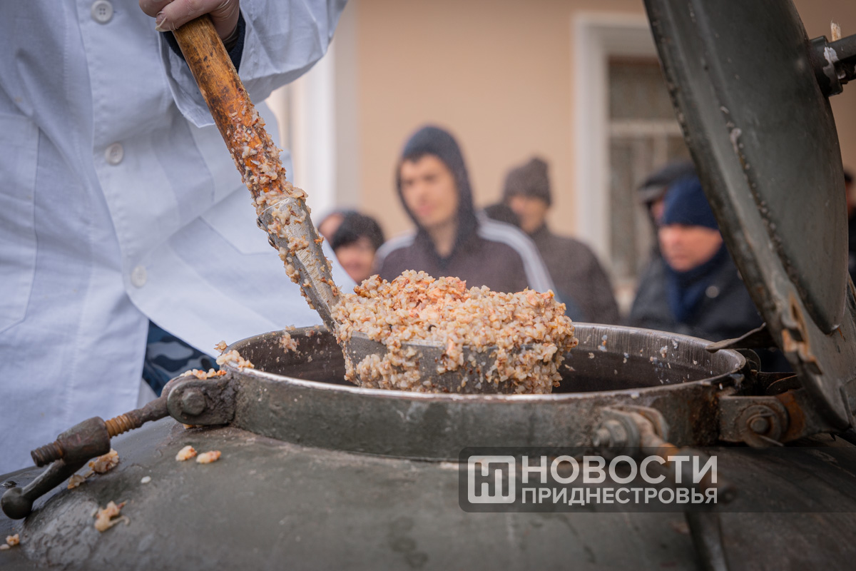 А тех, кто замёрз и проголодался, сотрудники МВД угощали горячим чаем с лимоном и настоящей солдатской кашей. За таким обедом сегодня выстроилась большая очередь. Всего порций было рассчитано на 500-600 человек.