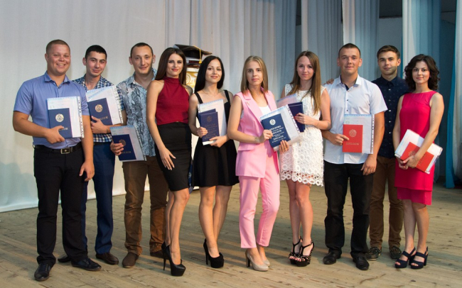 Награждали выпускников декан ЕГФ Владимир Фоменко, председатель Комитета Верховного Совета по образованию, науке и культуре Михаил Бурла, проректор по молодежной политике ПГУ Валентина Ени.