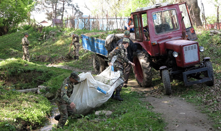 Сегодня муниципальный духовой оркестр выступал для коллектива МУП «Дубоссарское ПУЖКХ» и военнослужащих Дубоссарского военного гарнизона, которые приступили к уборке и благоустройству оврага в районе бывшей старой больницы, где протекает ручей Серебряный. Как сообщает пресс-служба местной госадминистрации, участники субботника собрали и вывезли мусор, спилили сухие деревья.